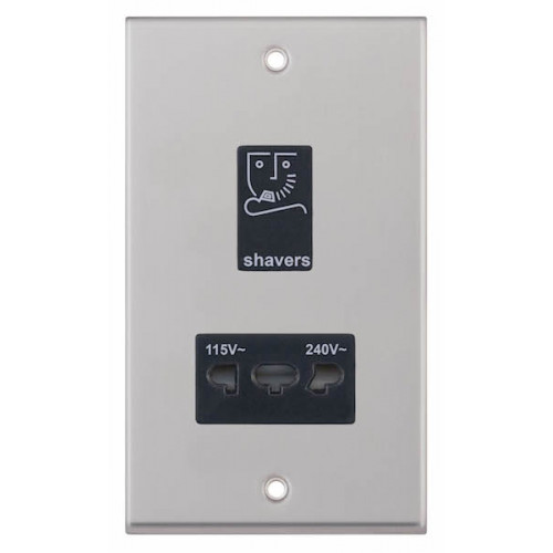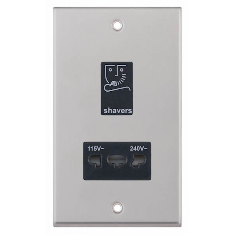 Selectric 7M-Pro Satin Chrome 115/230V Dual Voltage Shaver Socket with Black Insert 7MPRO-232