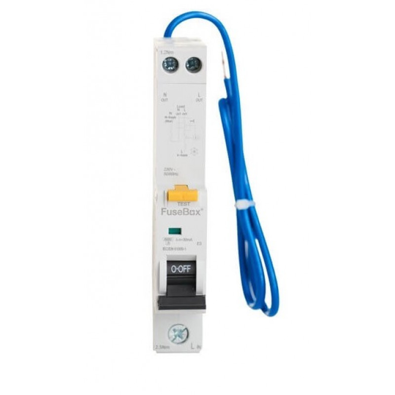 Designed for use in CP FuseBox consumer units, this Type A RCBOs respond to both AC and pulsating DC residual currents. It protects against both overcurrents due to overload and fault and residual current earth leakage. In either event, the RCBO interrupts electrical supply to the circuit thus preventing damage to the installation and devices and electric shock to humans.